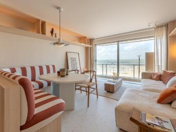Dans une résidence tout juste rénovée, ce penthouse en duplex de 154 m² jouit d'une situation AAA, à un jet de pierre des boutiques du Zoute, de la plage mais aussi du Zwin et du Golf. La rénovation date de 2022: chauffage sol, éclairage LED, domotique, cuisine full MIELE, parquet, 3 chambres, 3 salles d'eaux, buanderie, cave. Garage en sous-sols (option). Salon/salle à manger avec terrasse ensoleillée. Un appartement luxueux et lumineux, prêt à vous accueillir. Visites sur rv. PEB N° 20250811 - 3660304 - Indice B - E spec 193 kWh/m².an - E totale 29.664 kWh/an